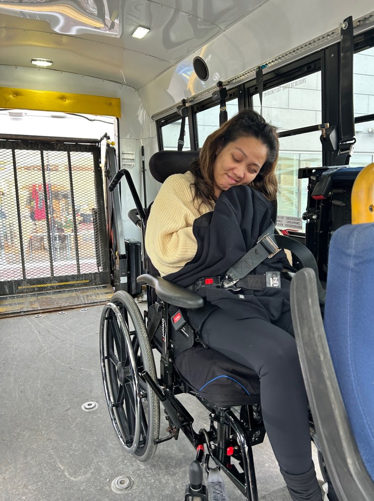 Jenny’s very first time using a wheelchair accessible vehicle.